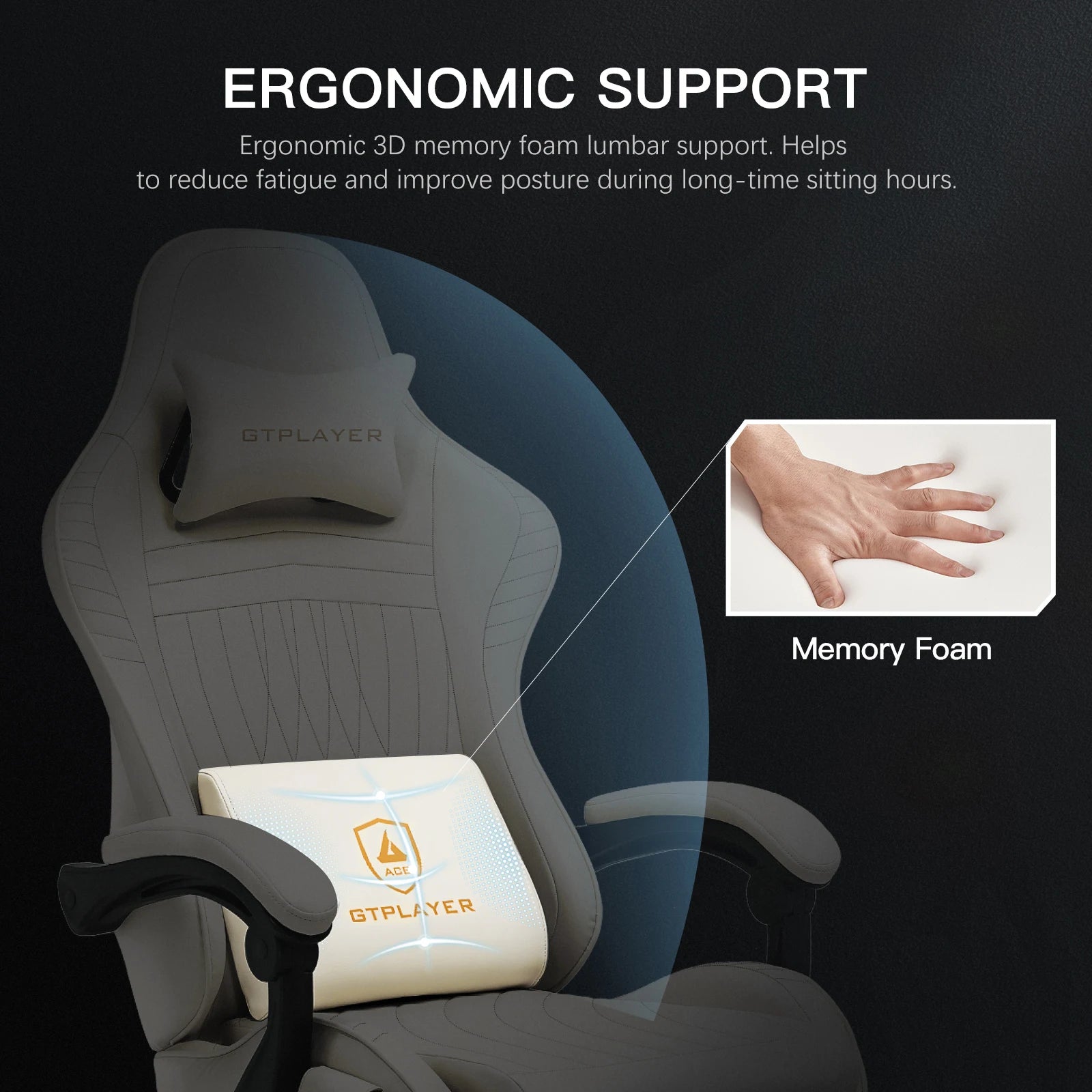 Si votre cou est tendu après de longues heures de travail ou de jeu, l’appuie-tête soulage efficacement la pression.